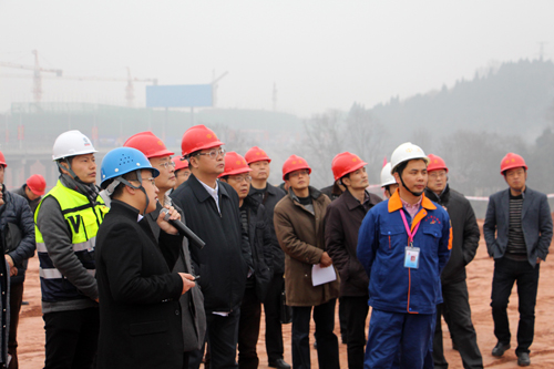 1月14日上午,四川簡陽市委書記王宏斌來到中太建設(shè)集團(tuán)承建的唯品會(huì)(中國)西部總部基地項(xiàng)目現(xiàn)場(chǎng),實(shí)地觀看了施工作業(yè)情況,并組織召開座談會(huì),對(duì)一期工程施工進(jìn)度及質(zhì)量給予高度肯定。簡陽市長趙春淦、市委副書記王德彰、副市長陳建龍及市政府、市人大、市政協(xié)及政府相關(guān)職能部門三十余人陪同視察。
