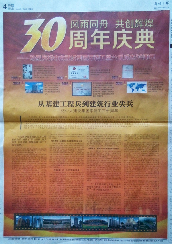 “三十年的積累與實踐,三十年的改革與創(chuàng)新,為中太建設集團打造了一張中國建筑業(yè)名片!