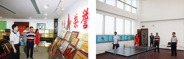 8月13日下午,河北省總工會基層組織建設(shè)部副部長張勇同志、張家口市總工會組織部副部長李廣龍同志、承德市總工會組織部副部長朱建爽同志一行三人,在市總工會外企私企聯(lián)合會主席王永才同志、市總工會組織部長于寶軍同志的陪同下,來到中太建設(shè)集團,就集團公司開展職工之家創(chuàng)建活動等相關(guān)工作情況進行實地調(diào)研與查看和進行座談,集團公司黨委副書記、工會主席鐘崇鶴同志致歡迎詞,工會副主席、企業(yè)文化部總經(jīng)理張娟娟同志匯報了集團公司開展職工之家創(chuàng)建活動等工會工作情況。