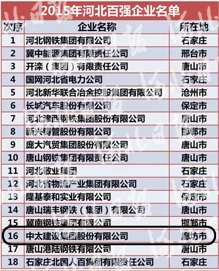 10月,經(jīng)河北省工業(yè)經(jīng)濟聯(lián)合會、省企業(yè)家協(xié)會、省企業(yè)聯(lián)合會和省統(tǒng)計學會協(xié)辦層層評選審核、專家評審和社會公示等程序,中太建設集團再次榮膺“河北百強企業(yè)”(第16名),并在“河北省重點行業(yè)排頭兵企業(yè)”排名中榮獲建筑業(yè)第1名。