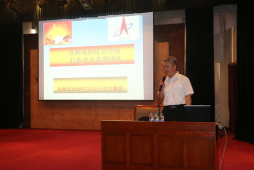 北京青年創(chuàng)業(yè)基地導師趙昶水同志概括地講解了中國共產黨建黨95周年的發(fā)展歷史和輝煌成就;并從中太的發(fā)展歷史與抗震救災和胡錦濤同志視察中太等典型例子講解了中太品牌文化(召之即來,來之能戰(zhàn),戰(zhàn)之能勝)的內涵;從職業(yè)精神、職業(yè)能力、職業(yè)水平、職業(yè)操守到學習力、凝聚力、行動力、創(chuàng)新力的“四個力”,再到落實執(zhí)行力的十個度,即(態(tài)度,喜歡單位,尊重領導,熱愛工作;速度,兩天的事情一天完成;力度,全力以赴;高度,高標準、嚴要求;深度,一深入就具體,一具體就深入;角度,找好工作的切入點;廣度,全面看問題,綜合解決問題;精度,實施精良管理,細節(jié)決定成。怀叨,做人講原則,做事講規(guī)則;韌度……)等內容。就如何做好合格黨員,爭當優(yōu)秀共產黨員,在“兩學一做”學習教育活動中起好模范帶頭作用做了一場精彩的演講。