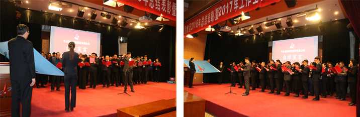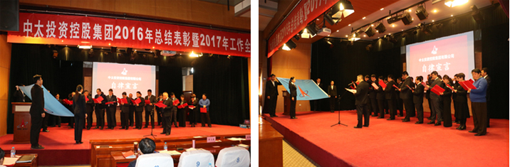 根據(jù)會議安排,中太建設(shè)集團(tuán)副董事長燕振義、總裁吳建國作為領(lǐng)誓人,分別引領(lǐng)中太投資控股集團(tuán)下屬單位董事、監(jiān)事及中層以上領(lǐng)導(dǎo)干部進(jìn)行自律宣誓,宣誓人分別在誓詞上簽字,并承諾2017年將恪盡職守、奮發(fā)向上,全身心投入到企業(yè)發(fā)展上來,做合格的企業(yè)引領(lǐng)人和決策者。