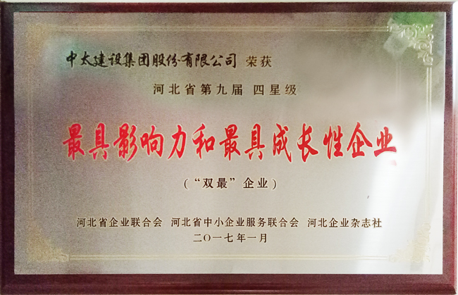 近日,河北省企業(yè)聯(lián)合會(huì)第六屆會(huì)員代表大會(huì)暨2017年河北省企業(yè)管理創(chuàng)新大會(huì)在石家莊召開,會(huì)議通報(bào)《河北省第九屆“最具影響力”“最具成長性”“最受關(guān)注企業(yè)家”評(píng)審結(jié)果》。中太建設(shè)集團(tuán)獲評(píng)四星級(jí)“最具影響力和最具成長性企業(yè)”(“雙最”企業(yè)),李文健主席被授予“最受關(guān)注企業(yè)家”稱號(hào)。