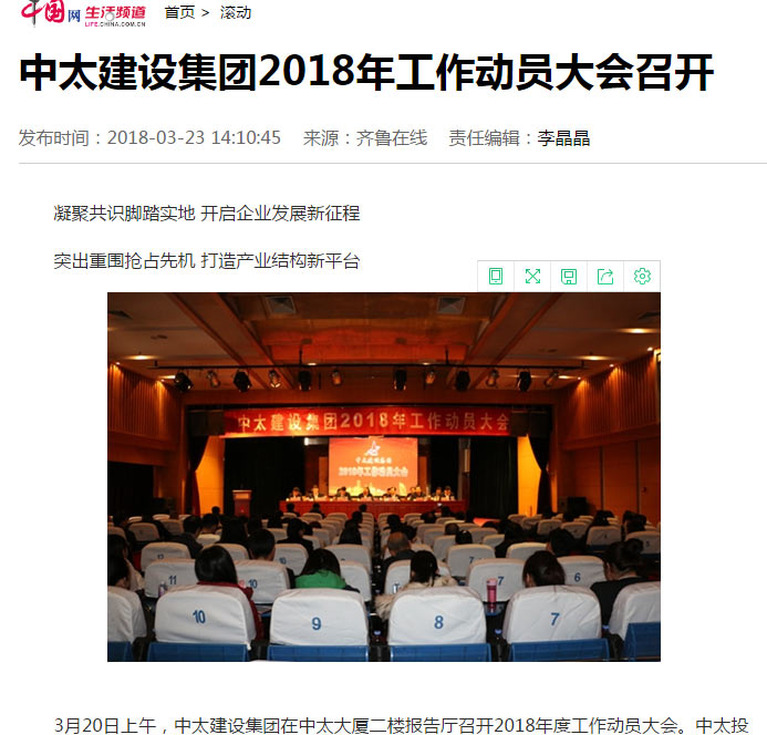 中國網(wǎng)報(bào)道了“中太建設(shè)集團(tuán)2018年工作動(dòng)員大會(huì)召開”