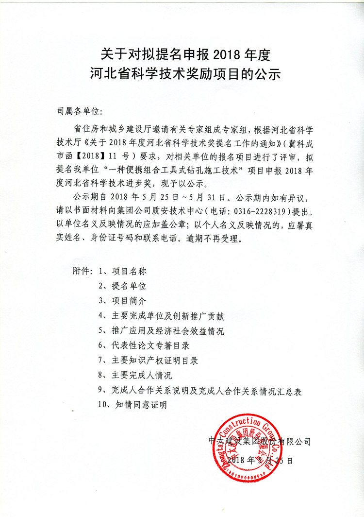 關(guān)于對擬提名申報(bào)2018年度河北省科學(xué)技術(shù)獎勵項(xiàng)目的公示