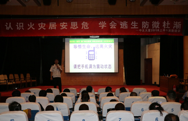 5月25日上午,中太大廈2018年度上半年消防培訓(xùn)在二樓報(bào)告廳舉行,邀請(qǐng)中國安全健康教育網(wǎng)河北站高級(jí)宣教員程軍老師,為大家?guī)硪粓?chǎng)精彩的消防知識(shí)講座。