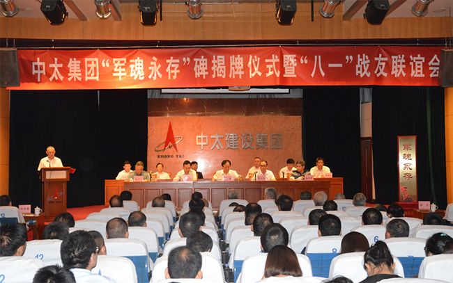 2018年7月26日上午,久違而清脆的集合號在中太大廈二樓報(bào)告廳久久回蕩,拉開了中太集團(tuán)“軍魂永存”碑揭牌儀式暨慶“八一”戰(zhàn)友聯(lián)誼會的序幕。中太集團(tuán)在廊各單位部分員工、機(jī)關(guān)各部門的全體員工和軍轉(zhuǎn)工在崗與退休戰(zhàn)友代表共180多人,著裝整齊,嚴(yán)陣以待,期待這一莊嚴(yán)時(shí)刻的到來。
