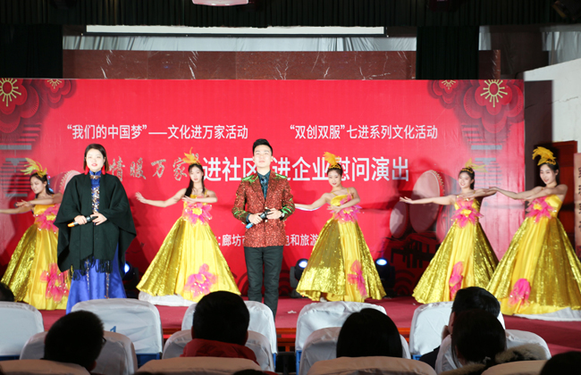 2019年2月19日上午,廊坊市伴著瑞雪迎春的兆頭和上元節(jié)張燈結(jié)彩的情景。中太大廈二樓多功能廳燈光璀璨,歡聲笑語,廊坊市文化廣電和旅游局組織的“我們的中國夢”文化進萬家系列活動在此舉辦,這也是這支文藝小分隊進企業(yè)、進社區(qū)開展“情暖萬家”慰問演出的第十場演出。市文廣旅局副局長李永生、中太投資控股集團監(jiān)事會主席吉士俊出席活動并分別致辭,中太系統(tǒng)在廊各板塊的部分員工觀看了慰問演出。
