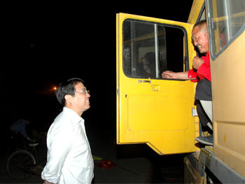 梁軍與我公司押車隊員陳寶祥進行了親切交談,仔細(xì)詢問了他在途中的生活問題。同時,他叮囑每位押車隊員,一定要注意安全,搶險救災(zāi)期間有困難要立即向搶險隊負(fù)責(zé)人匯報,省建設(shè)廳一定盡力解決。 |