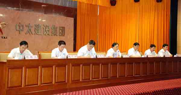 集團(tuán)領(lǐng)導(dǎo)在主席臺(tái)就坐