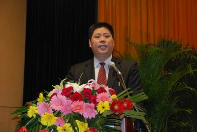 中太大廈二樓報(bào)告廳,鮮花吐艷,綠葉蔥蔥!叭尕瀼芈鋵(shí)廣州年會(huì)精神,堅(jiān)決完成09年任務(wù)目標(biāo)”的大幅標(biāo)語(yǔ)格外醒目。
