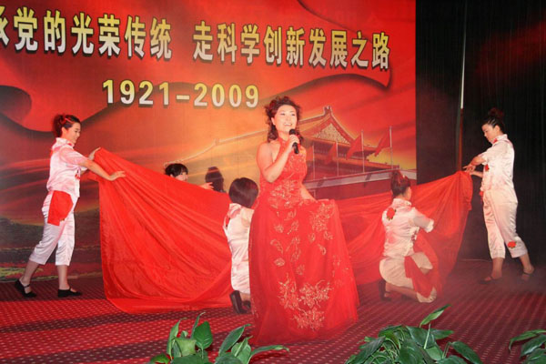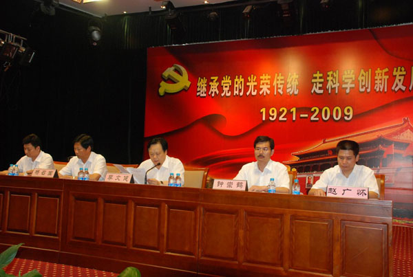 黨委副書記鐘崇鶴宣讀了2008年度“一先三優(yōu)”表彰決定。然后,李文健、鐘崇鶴、楊召國、趙廣懷、梅興元分別為受表彰單位和個(gè)人頒獎(jiǎng)。李春陽等6名新黨員面對(duì)黨旗,舉行了新黨員入黨宣誓?偛、各集團(tuán)(板塊)機(jī)關(guān)全體黨員及所屬各黨支部班子成員、部分黨員、管理人員200多人參加了表彰大會(huì)。會(huì)議采取以演唱歌頌黨的革命歌曲為主要內(nèi)容、邊頒獎(jiǎng)邊演出文藝節(jié)目的形式,將大會(huì)推向了一個(gè)高潮,受到了大家的歡迎和贊揚(yáng)。