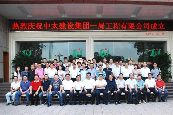 2009年7月2日上午,中太建設(shè)集團(tuán)一局有限公司成立大會(huì)在廣州珠江賓館召開(kāi)。集團(tuán)總裁張明禮出席成立大會(huì)并講話。第三工程局局長(zhǎng)羅新代表區(qū)域公司在會(huì)上做表態(tài)發(fā)言。會(huì)議由集團(tuán)副總裁劉啟友主持。