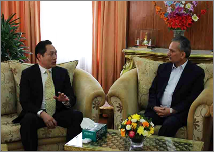 馬功云局長(左)拜訪尼泊爾總理,介紹中太建設(shè)集團發(fā)展情況。