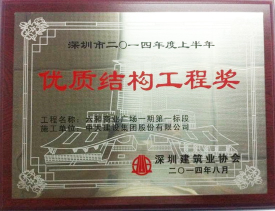 8月28日,深圳建筑業(yè)協(xié)會發(fā)布“關(guān)于表彰2014年度上半年深圳市優(yōu)質(zhì)結(jié)構(gòu)工程獎(jiǎng)的決定”公告。第二工程局承建的房建項(xiàng)目“六和商業(yè)廣場一期第一標(biāo)段”榮獲深圳市2014年度上半年優(yōu)質(zhì)結(jié)構(gòu)工程獎(jiǎng)。
