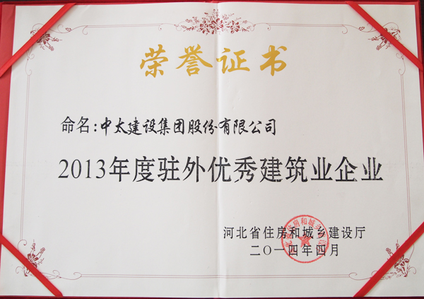 日前,由河北省住房和城鄉(xiāng)建設廳主辦的關于評選2013年度駐外優(yōu)秀建筑業(yè)企業(yè)和優(yōu)秀項目經(jīng)理的活動結果揭曉,中太建設集團以突出的綜合實力和良好的社會口碑,被授予“2013年度駐滬優(yōu)秀建筑業(yè)企業(yè)”榮譽稱號,項目經(jīng)理石鋒德以優(yōu)異的工作成績和惟以求真的工作態(tài)度被光榮評選為“2013年度駐滬優(yōu)秀項目經(jīng)理!