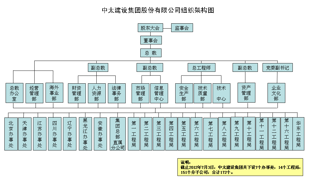 中太建設(shè)集團股份有限公司黨委始建于1985年3月,是由中國人民解放軍基建工程兵352團集體轉(zhuǎn)業(yè)后、經(jīng)中共廊坊市委批準(zhǔn)設(shè)立的,名稱為“中國共產(chǎn)黨廊坊市建筑工程總公司委員會”,后更名為“中國共產(chǎn)黨廊坊市城市建筑安裝工程一公司委員會”;2001年9月,更名為“中國共產(chǎn)黨廊坊市中太建筑安裝有限責(zé)任公司委員會”;2005年7月,更名為“中國共產(chǎn)黨中太建設(shè)集團股份有限公司委員會”,建立黨委以來共進行了七次換屆,本屆黨委于2022年9月27日選舉產(chǎn)生,黨委班子成員由7人組成,紀(jì)檢班子成員由5人組成。其中設(shè)立黨委書記1人,黨委副書記1人,委員5人;紀(jì)委書記1名。集團黨委隸屬于廊坊市國資委黨委,集團黨委下設(shè)基層黨組織13個,共有黨員424人。 截止2024年12月31日,集團黨委隸屬于廊坊市國資委黨委領(lǐng)導(dǎo),共有黨員399名,下設(shè)有12個黨支部。其黨組織機構(gòu)設(shè)置及人員任職情況如下: 中共中太建設(shè)集團股份有限公司委員會: 書記:李文健 副書記:胡衛(wèi)東 委員:門輝、邢旭巍、李曉輝、王連忠、劉然 中共中太建設(shè)集團股份有限公司紀(jì)律檢查委員會: 書記:李曉輝 委員:劉啟友、魏翔、段慧思、姚亮 12個黨支部分別是: 中太投資控股集團機關(guān)黨支部,書記劉啟友; 中太建設(shè)集團機關(guān)黨支部,書記李曉輝; 中太中建公司機關(guān)黨支部,書記門輝; 中太物業(yè)公司黨支部,書記付薇; 中太設(shè)備租賃公司黨支部,書記劉洪庚; 中太混凝土公司黨支部,書記姚亮; 老年康復(fù)醫(yī)院黨支部,書記段慧思; 中太(廊坊)勞務(wù)公司黨支部,書記張飛; 中太集團勞務(wù)人員黨支部,書記孫萬超; 中太退休人員第一黨支部,書記鄧啟軍; 中太退休人員第二黨支部,書記趙際榮; 中太退休人員第三黨支部,書記段慧思。 |