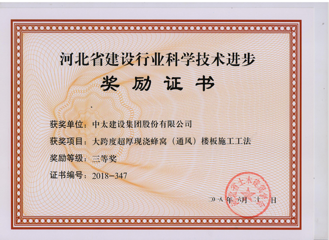 2018年河北省建設(shè)行業(yè)科學(xué)技術(shù)進(jìn)步獎(jiǎng)勵(lì)證書(shū)匯總