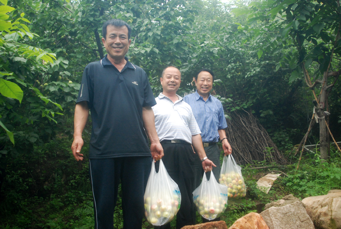 從京承高速公路下道,兩輛大巴車沿著崎嶇山路緩慢行駛。山道兩側(cè)灌木郁郁蔥蔥,置身于這天然氧吧,清新的空氣順暢地能讓人一下子呼吸到了丹田而心神氣爽。一路上,路邊采摘的果園比比皆是?諝庵心枪麑(shí)散發(fā)出的清香,直入心脾,令人口舌生津。