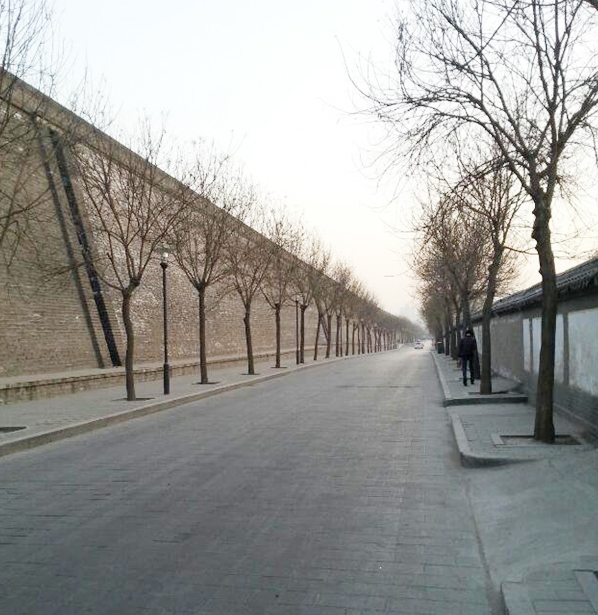 又行駛了半小時后到達了西安北站,出站后坐上去酒店的大巴,看著西安北站以及沿途的建筑,還是讓我體會到了一些古城的味道,雖然是新式建筑,但是色彩上卻都是灰色,我和同事猜測著可能是市政規(guī)劃要求的吧!隨著車子接近目的地,我們來到了古代長安城里,在進城的剎那,我們看到了高大的古城墻,導游告訴我們是這就是古代的長安城,整個長安城有這古城墻圍繞著,城墻外是護城河......這時我只被這長長的高大城墻震住了,導游的話已經聽不見,眼看著大巴已經進入城里,城墻也被遠遠的甩在了后邊,還好沒過多久我們到了酒店。放下東西,吃過晚飯,和同事三五成群又走回了城墻根下,總是想著近距離接觸一下這令人震撼的墻體,“秋風吹渭水,落葉下長安。三千繁華已流盡,斜陽斜照古城墻”,想起這詩,無限的蒼涼感頓時油然而生。雖然此時不是秋天,也沒有斜陽,但是在這陰冷寂寥的冬日里,越發(fā)顯得沉重!