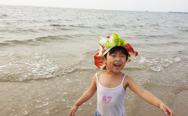 拍了照片后,突然讓我感覺像文清同學(xué)媽媽去澳門時(shí)住在海景房拍的海景照片! 看完海景就開始了匆忙的換泳衣準(zhǔn)備下海,海景公寓的好處就是出來小區(qū)走上自己的棧道就是小區(qū)的私家海灘,非常干凈。近距離的接觸大海,吹著涼爽的風(fēng)(天氣多云,溫度在29度),讓我們一行幾個(gè)馬上開懷起來,每個(gè)人的興奮在臉上流露。孩子是最興奮的,跑到海邊上,任憑海浪一層層的打過來(這天風(fēng)并不大),孩子說:“媽媽,你看大海碰我了!”竟然用起了擬人句,把大海打過來的浪花比作在“碰”,這字用的多么美妙啊!我一邊欣賞著美景一遍在咂摸著這話,贊嘆著孩子的天真和用詞之妙。我們真的跳入大海浸泡的時(shí)候,舅舅在照顧著她,突然一個(gè)浪打在了孩子的頭上,孩子嚷著:“我要離開大海了”,這是在身邊的舅舅轉(zhuǎn)告我的,我在想孩子真是長(zhǎng)大了,會(huì)表達(dá)很多個(gè)人的感情了,“啊,我要離開大海了”是一個(gè)陳述句,但是好像是表達(dá)著一種不舍得離開但是有不得已的感情,她很想在大海里再待一會(huì),但是因?yàn)樗焕嘶ù驖窳祟^發(fā),依她個(gè)人的膽量可能害怕了,所以說了句“啊,我要離開大海了”,孩子的成長(zhǎng)讓我們自覺不自覺真切感受到了。然后她自己在海灘玩沙子,挖了大大的沙坑,每當(dāng)海浪沖過來的時(shí)候,總是興奮的說:“媽媽大海幫我大忙了,還給其他家人也興奮的嚷嚷,大?墒菐土舜竺α恕。當(dāng)我問她到底幫了什么忙時(shí),她說:“大海給我的沙坑送來了水啊”(估計(jì)是她不用拿著自己的小碗去海邊舀水了)。我感嘆著女兒的天真浪漫和快樂興奮,內(nèi)心在想:帶著孩子出來玩玩是多么對(duì)的選擇,大自然的風(fēng)光的確是能刺激人的靈感,說了那么多令我平時(shí)聽不到的妙字妙語(yǔ)。這趟短途旅行意義非凡!